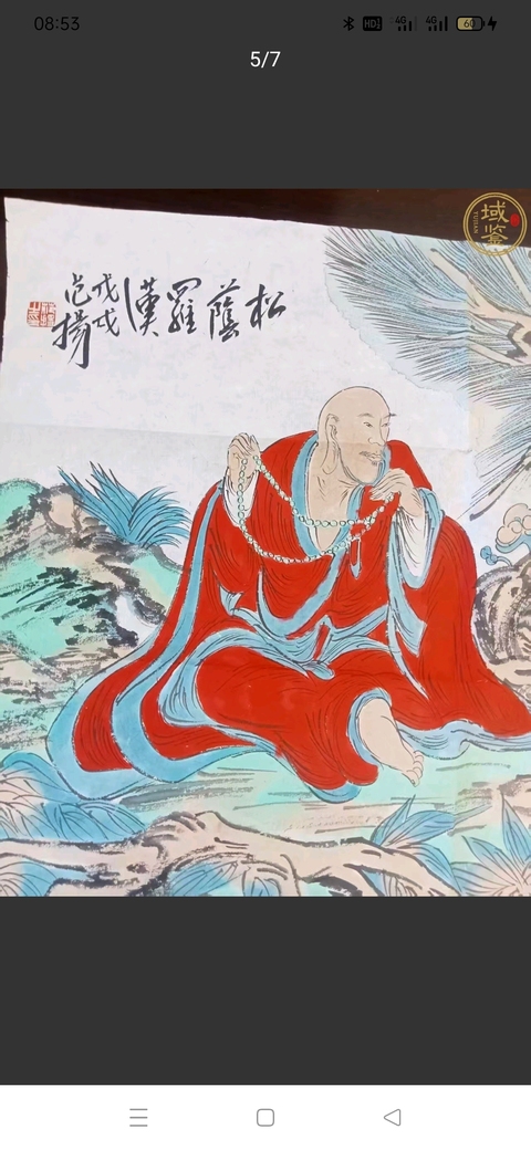 歡迎您來到域鑒:藏友好,您提供的這幅寫意人物(松陰羅漢)作品從圖片上看筆墨風格,畫面氣息皆與著名畫家范揚作品相符,初鑒看真。因圖片鑒定有一定的局限性,建議請專家上手,看是否有現代微噴印刷痕跡,以辟免不必要的損失。謝謝信任,祝安康。
